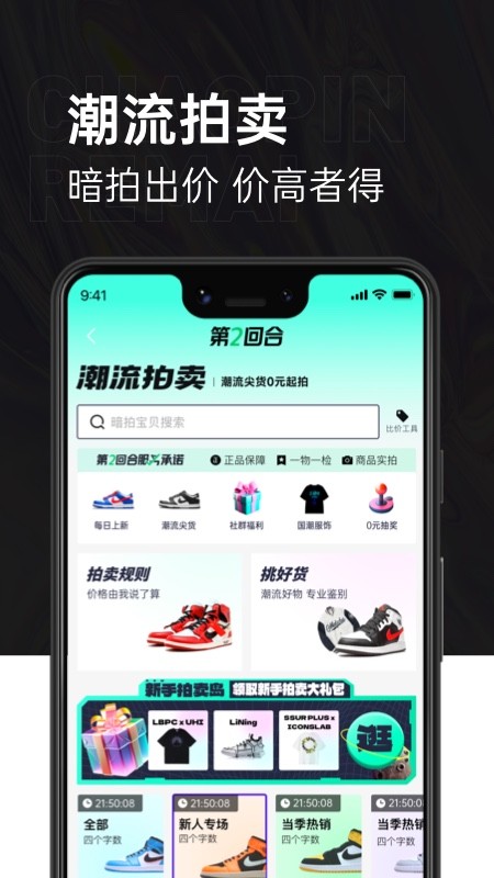 第2回合致力于打造年轻人的潮流绿色循环交易平台,平台专注闲置潮流拍卖、寄售、回收、鉴别等各类服务,让你的潮流想换就换!