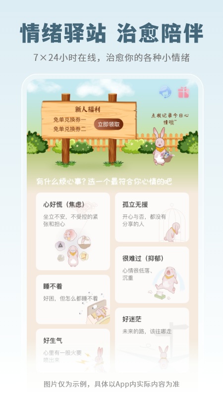 云愈心理提供了丰富多样的功能。有7×24小时在线的求助服务,在“求助”页面可选择心情日记、即时倾诉、放松训练、心理疏导等多种舒缓方式;依托CBT理论的专业心理疏导,通过AI智能对话剖析自身自动思维,学习情绪缓解技巧;基于海量测试数据和专业心理学量表的AI智能测评,由AI助手在线对话测评并进行智能评估;提供包含百余个心理测评量表的心理测试,可全面了解自身心理健康状况;简单方便的心情日记,用情绪标签标记心情变化;专业的冥想助眠音频,帮助放松身心、改善睡眠质量;AI虚拟人物24小时陪伴的即时倾诉,提供安全私密的倾诉空间;还有新人注册登录即送量表测评和心理疏导的福利活动,且不定时做特惠或免费活动。