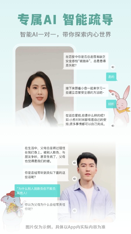 云愈CBT课程依托于CBT理论,联合心理领域权威专家团队,精研国内外文献成果,将干预技术转化为AI智能对话,跟随AI助手一步步剖析自身自动思维,学习情绪缓解技巧,改善心境障碍带来的情绪问题。专属AI智能心理咨询,为您提供个性化和专业化的心理咨询服务。