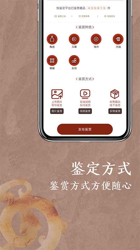 手机随时拍照上传即可鉴定,自己选择鉴宝专家,实时接收专家鉴定意见;资深鉴别团队,为您的收藏之路保价护航。