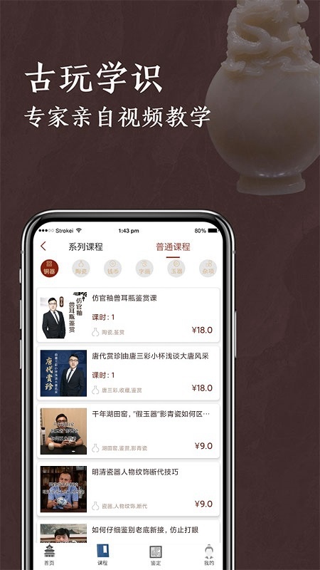 古玩鉴定入门大百科 - 古董收藏鉴定交易指南,多种专家热门古玩课程,免费试看,提高你的鉴赏能力,小白摇身变资深鉴赏家!