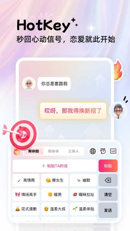 Hotkey 热键 是一款实用的脱单软件,适合任何想要提高社交技巧、建立新联系或只是在聊天中更好玩的人。无论你是学生、专业人士还是企业家,Hotkey 热键 都可以帮助你实现目标。