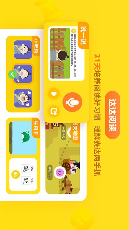 《达达学院》是杭州天音计算机系统工程有限公司联合国内知名幼教专家为2-8岁儿童开发集科学性、趣味性、互动性为一体的学习资源平台。以中国教育部《3-6岁儿童学习与发展指南》为指导,围绕幼儿教育五大领域,将抽象的知识点和趣味的场景游戏结合起来,提供“达达数学”“达达阅读”“小小艺术家”“小小科学家等”“律动大师”等专项能力提升课程,为提升儿童的综合素养,培养多元智能提供强有力支撑。 《达达学院》APP功能