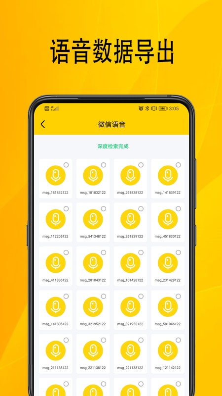 检索扫描手机中所有的音频文件,包括微信聊天语音、QQ聊天语音等,支持一键导出