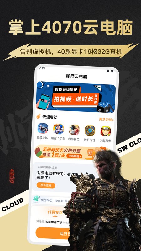 应用名称:顺网云电脑 应用包名:com.swcloud.game