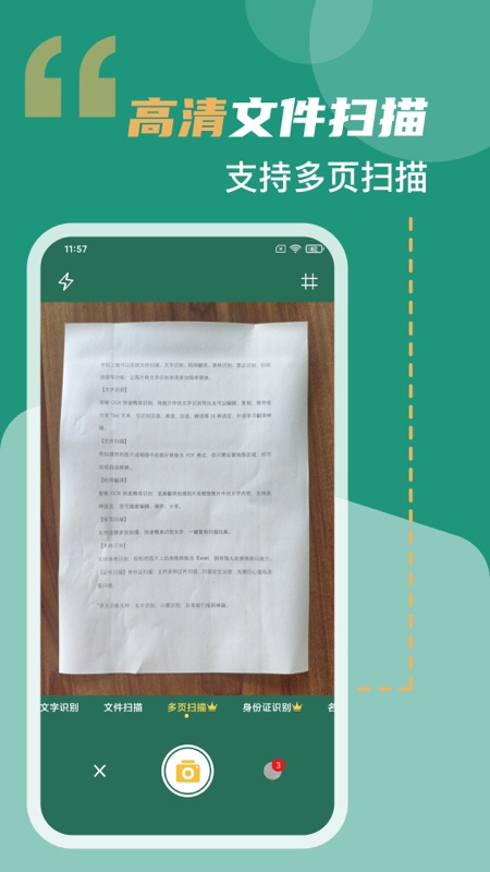 它就像手机里的扫描仪,可自动识别文档边界生成扫描件,将摄像头对准文档,能自动识别边界并拍出扫描件,还有多种文档色彩可供选择。此外,识别翻译结果可编辑,还能选择复制到各种App中使用。