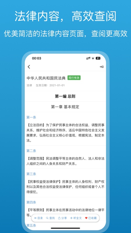 • 文内查找:法条目录定位、阿拉伯数字定位法条,文内关键词搜索