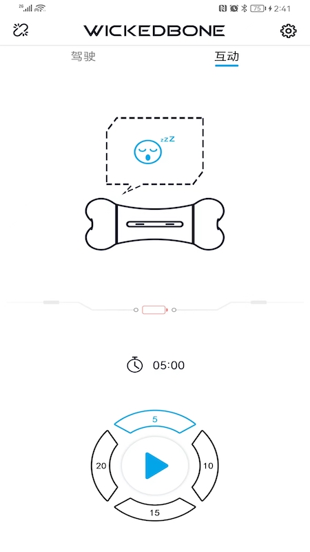 连接成功后,可根据需求选择遥控模式或互动模式。若选择遥控模式,在控制区内通过手指操作虚拟摇杆控制疯狂的骨头的动作,也可选择九种预设动作;若选择互动模式,让疯狂的骨头自行与狗狗进行互动。