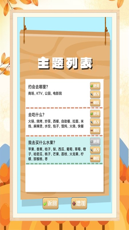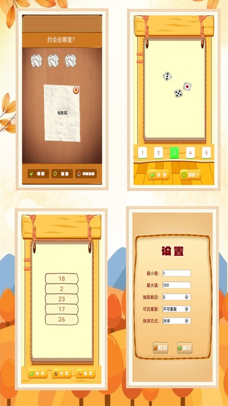 有时用它和小伙伴们一起娱乐也不错,比如每人从预先设置好内容的卡片中随机抽取一个,以决定谁该得到什么或做什么。 APP功能