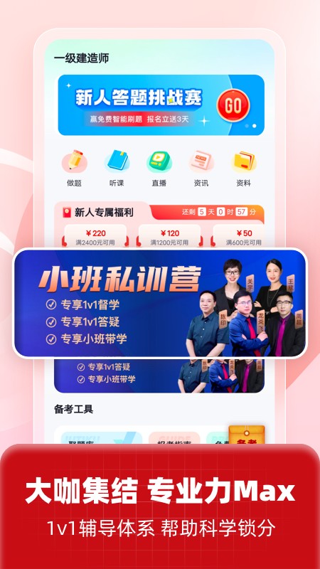一级建造师题库新增搜题功能,一级建造师考试中的疑问一搜便知,更支持语音和拍照搜题。
