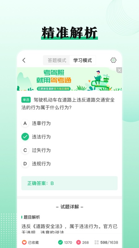 3、专业的真题详解:结合交规变化逐题整理题目详解,理解透彻更好记忆;