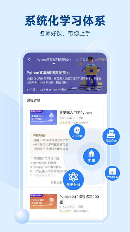 微课即学即练:采用游戏化闯关学习,学练结合,能快速掌握知识。