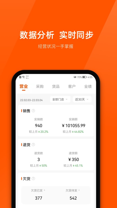 提供了关于销售开单,订货等所有功能,还有关于门店账务的一切数据。