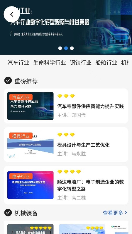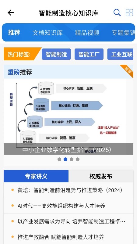 本应用是智能制造领域视频和资料的阅读平台,能为用户提供丰富的智能制造相关视频与资料。围绕智能制造体系架构、使能技术、规划应用、选型实施等多维度打造优质知识专题,方便用户获取多方面的智能制造知识。