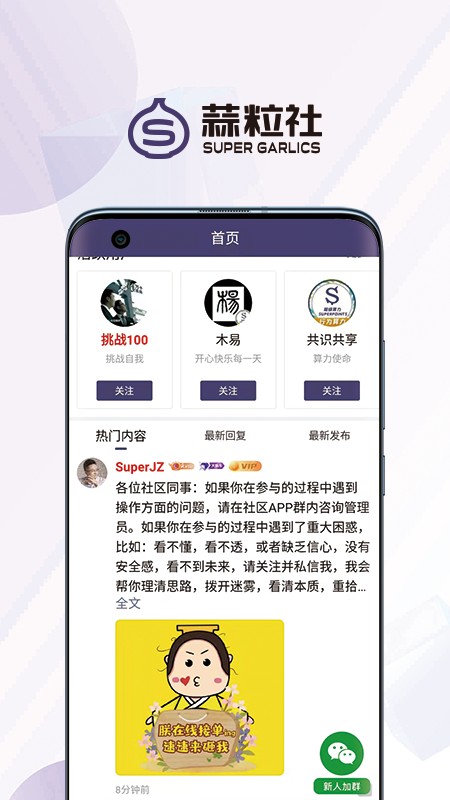 蒜粒社是一个创新的消费者社区,这里汇聚了很多购物高手,你可以从他/她们身上学到很多实用的线上、线下购物经验,越来越感受到买东西少花钱、不花钱,甚至还赚到钱的乐趣。蒜粒社的每一位社员都知道:买前先蒜蒜,购物更划算!不蒜不知道,一蒜吓一跳!买东西可以买贵的,但绝不可以买贵了!快来加入我们吧! 功能特色