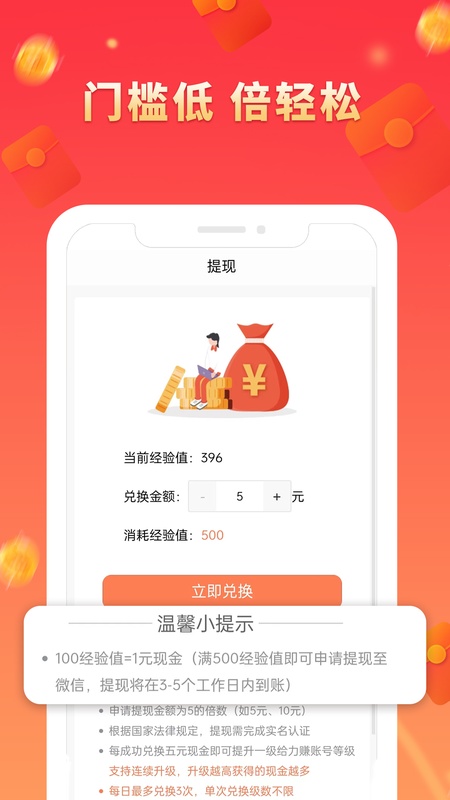 完成每份调查问卷可获得50-10000经验值奖励,通过经验值升级即可兑换微信红包,5元起兑~