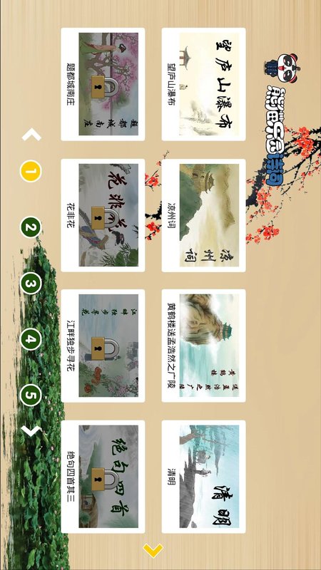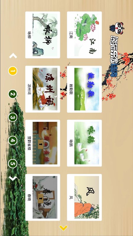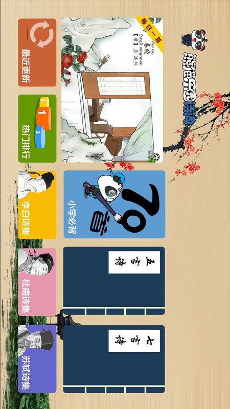 熊猫乐园诗词提供上百首古代热门经典诗词,是帮助2 - 10岁小朋友学习古诗的工具,能让孩子们在轻松、快乐、自然的状态下学习古诗,帮助他们认识大自然、了解世界。