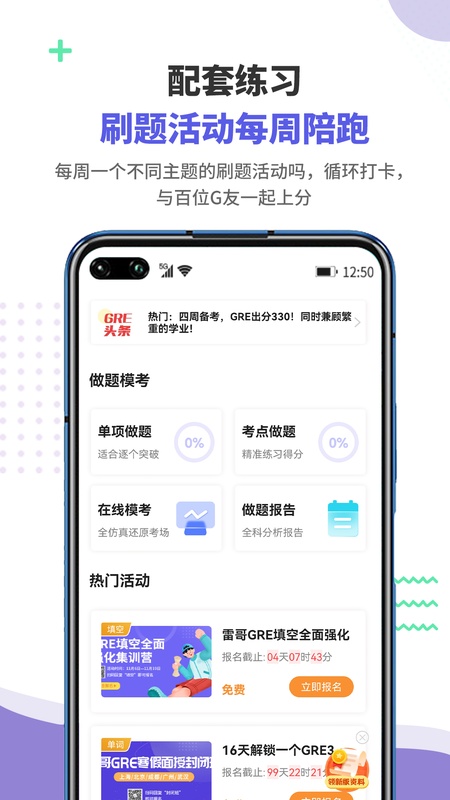 4、gre刷题打卡团,专业名师精讲解析雷哥GRE每月不定时开启gre单词,填空,阅读,数学等刷题团,学习小助手在线监督,专职讲师一对一问题答疑,助你查漏补缺战胜不自律,养成好习惯,快速出分不再是梦想!