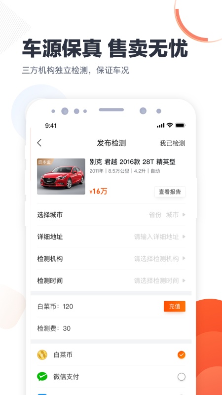 多项实用功能助力商家,从车源发布营销到交易收款,再到车辆检测维保查询,提供一站式便利。