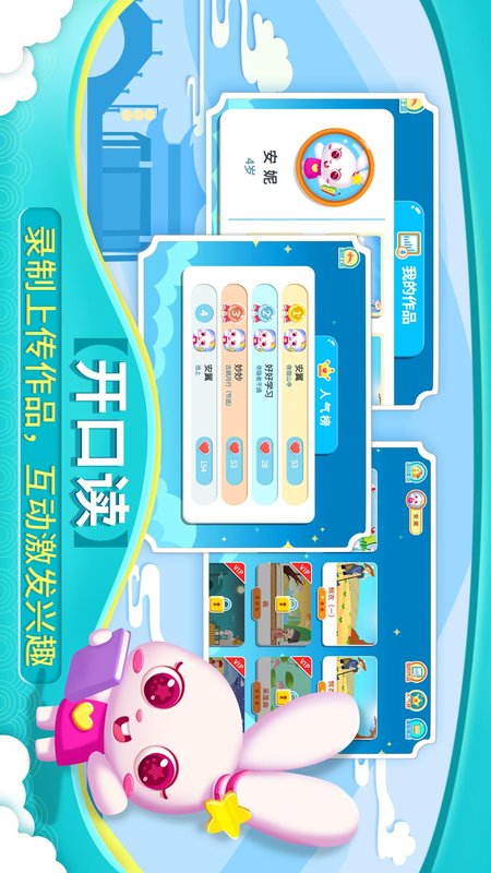 支持录音上传功能,鼓励孩子开口读古诗,上传自己的朗诵作品,和其他小朋友点赞互动,让学习不再单调! 软件功能