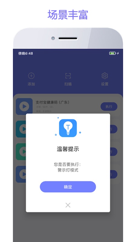 该APP提供了诸多便捷操作,例如能一键打开健康码页面,方便出行;回家后可一键设置手机亮度和静音,营造舒适环境;回到公司能一键完成自动打卡,节省时间;长按音量键即可快速给亲人拨打电话,操作简单。并且,若现有功能不能满足需求,用户还能根据规则自由搭建属于自己的快捷指令。