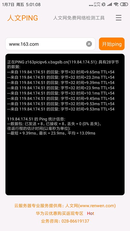人文网人文PING域名软件,解决了很多IT人士在手机上,需要ping出域名IP地址的问题!