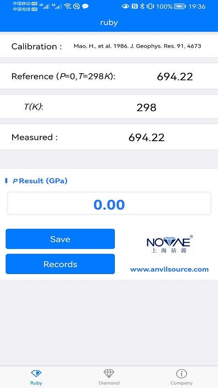 一款免费的压力计算软件,适用于金刚石对顶砧(DAC)的压力计算,包括常见的红宝石及金刚石为压标的压力计算。诚挚欢迎有需要的科研人员提供建议和意见完善相关公式、功能!