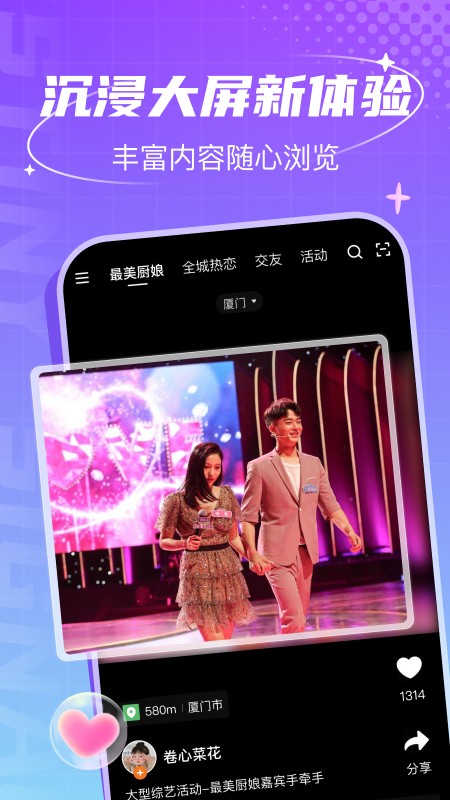 提供用户全方位、沉浸式、场景化的社交体验,可以随时随地认识身边有趣的人,发现身边美好生活,鼓励和陌生人成为好朋友,在社群中自由表达,分享有趣好玩的内容和体