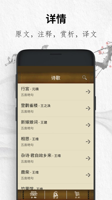 该APP包含拼音注音和注释、译文、赏析,加上水墨古风的设计风格,为读者提供赏心悦目的诗词意境。