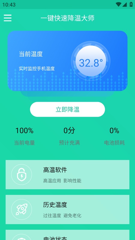 一键快速降温大师可以实时检测手机的温度情况,让你对手机的温度了如指掌。