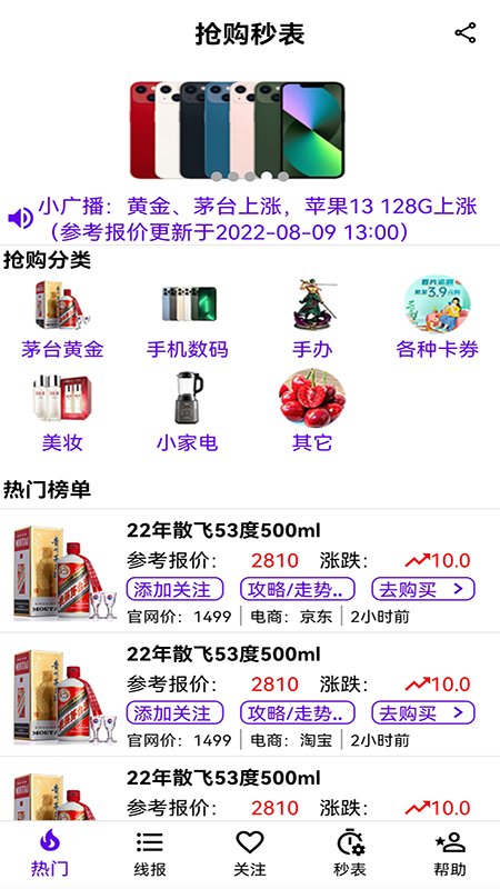 抢购秒表具备实时更新参考价格的功能,让用户清晰了解商品价格动态。同时,提供省钱线报,帮助用户获取更多优惠信息。此外,悬浮秒表方便用户在抢购过程中精准把握时间。