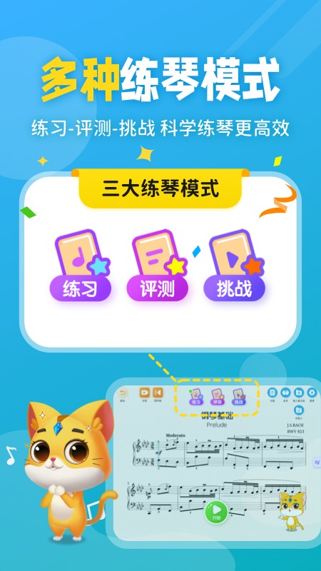根据6 - 12岁孩子的认知能力和乐曲学习场景,科学设计3种练琴模式。结合儿童心理学和海量钢琴老师陪练经验及数据,运用Ai音频识别技术,帮助琴童高效解决不同阶段练琴问题。拥有丰富曲谱资源,能详细、完整记录孩子练琴轨迹。