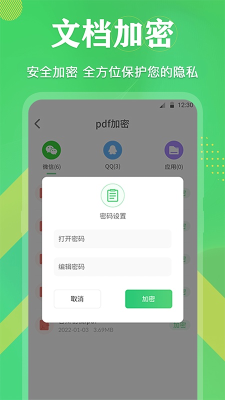 该PDF文件转换应用软件提供多种文件格式转换及处理功能。支持pdf与word、excel、ppt、jpg文档格式之间的互相转换,包括6种pdf与Office文件格式的互转,如pdf转word、pdf转excel等。还具备pdf加密/解密功能,支持权限设定,以及文件压缩/解压功能。能帮助用户将微信、QQ、钉钉等聊天工具接收到的文件和图片转换成pdf文档格式或办公Office文档格式。手机用户可随时随地完成各种文件格式的转换,且能便捷地把转换好的文件发送给好友或电脑上的聊天工具。此外,提供灵活多样的pdf转换word方法,可对不可编辑文档进行修改;还能进行pdf转换图片、将手机照片转pdf做成相册分享等操作。