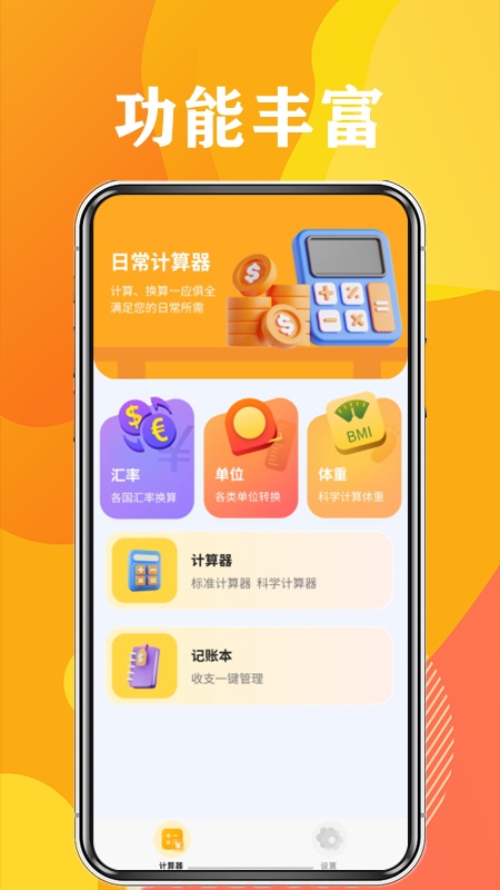 集标准计算器、科学计算于一体的智能计算器,内存小,计算精准,能解决各种复杂运算和换算,比自带的计算器更好用!			应用功能