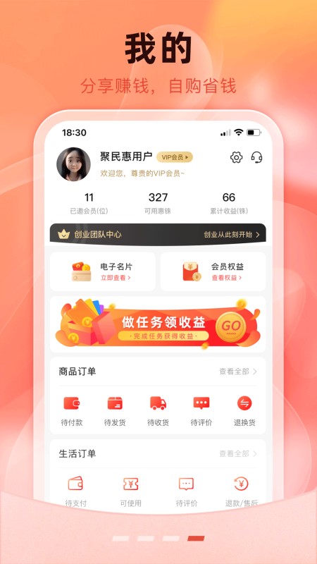 聚民惠平台是一个集短视频直播、源头供应链商城、本地生活服务三大板块为一体的综合性服务平台,依托于聚民惠集团强大的供应链集采、主播团队、合伙人体系、数字化技术服务等优势资源,通过“自购省钱、分享赚钱”为核心的共创利他的推广模式,为用户提供来自全国各地的源头好货和优质的本地生活服务产品,满足用户日常生活中的多元化需求。同时,对于企业或商家而言,聚民惠平台也是一个有效的营销渠道和品牌推广平台。 功能特色
