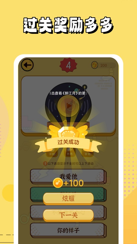 什么软件能让你成为猜歌大师、猜歌小达人、无敌猜歌王、最强答人?那肯定就是这款软件了呀!这是一个让你成为中华小乐库和知识达人的神奇猜歌答题软件!