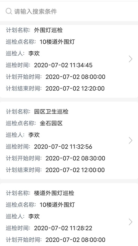 管理人员可在系统中设置巡检路线和计划任务,巡检人员按照设定的路线和任务进行巡检,在现场通过扫描二维码、借助 GPS 定位等方式完成巡检流程,同时可进行现场拍照并添加水印记录情况。后台会自动对数据进行汇总和分析,统计完成率和准勤率。