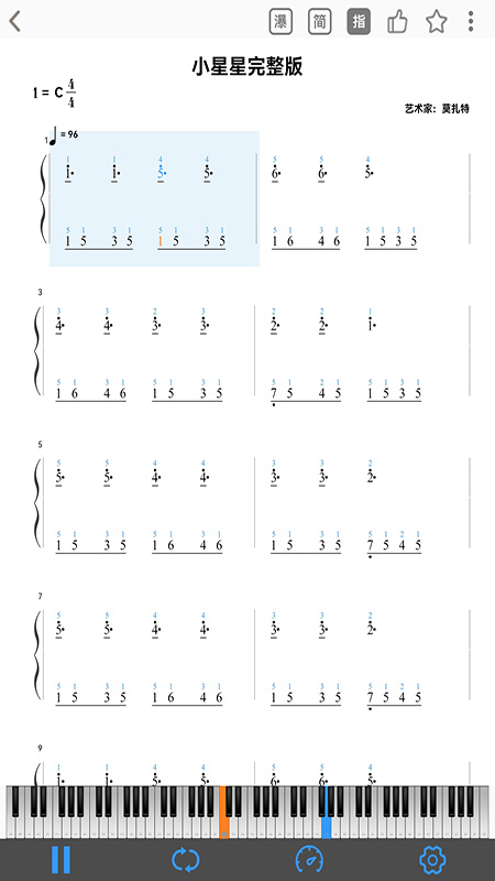 该软件拥有智能曲谱和实用功能两大板块。智能曲谱方面,有海量智能曲谱可搜索,曲谱能播放,可设置位置、循环、速度,查看瀑布流,调整音轨;能一键转简谱、生成指法、转调,还可一键导出pdf格式曲谱。实用功能包含虚拟钢琴,88键且音色真实、种类丰富;可进行和弦解析;有简约易用的节拍器,节拍声音可设置;具备瀑布流,有落球/瀑布模式可切换;所有曲谱能转原神/光遇弹琴的键位;支持在线斗琴;有练习模式可打分;支持外接蓝牙键盘和MIDI键盘;可导入本地指定格式曲谱(Xml, Midi)并享有智能曲谱功能。