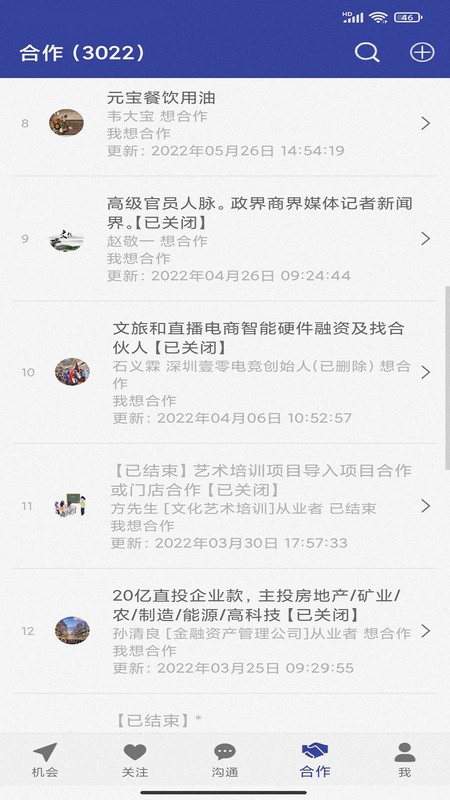 具备社交功能,用户能关注感兴趣的合作伙伴,留言交流,更新业务动态,对他人动态点赞评论,增强互动性。