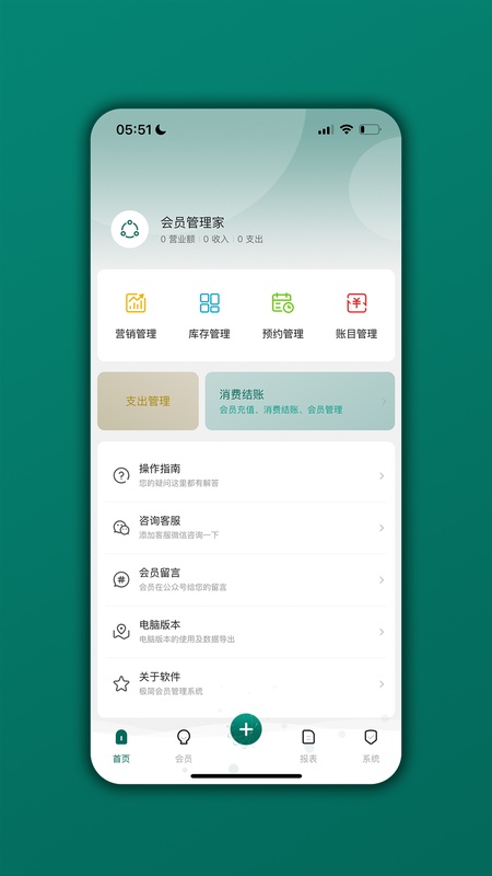 该应用具备多方面功能。在会员管理上,可进行会员秒查、绑定、充值、充次,设置会员折扣以及积分兑换等。消费结账方面,支持普通结账、快速结账、储值结账、计次结账、散客结账,还能自动积分和折扣。营销管理包含优惠卡券的定向发放、抢领发放,有预约商城和活动公告。消息通知可发送公众号消息、优惠通知、活动通知、充值通知、消费通知、积分通知。会员自助功能有余额、余次、积分、消费、充值查询,可领取优惠、查收通知和自助预约。账务管理涵盖账务明细、分类明细、支付管理和内部转账。支出管理可记录支出、查看支出记录和统计。商品管理涉及服务项目、零售商品,支持扫码选品、库存查询、商品盘点和商品流水。报表统计包括收入、利润、支出统计,有日报月报,还有绩效提成、消费排行、充值排行等多种排行。系统管理可设置商家信息、进行店员管理、权限管理,查看操作记录、打印小票和导出数据。