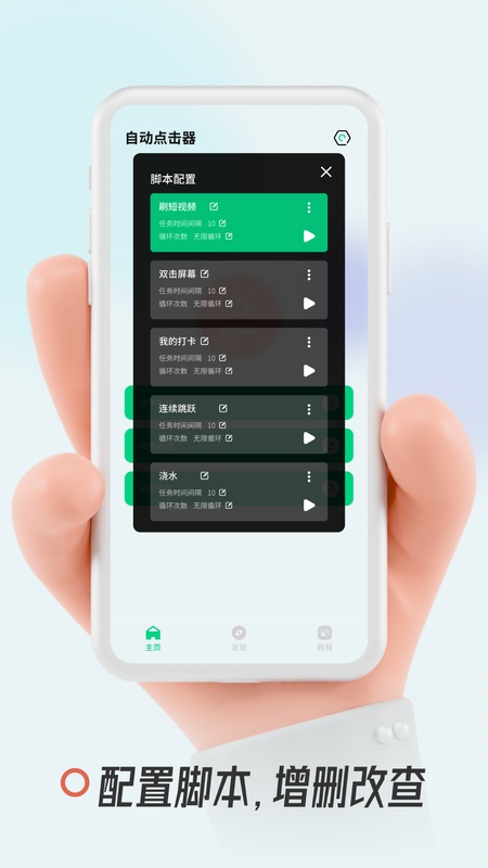 4、内置常用脚本,并可对脚本做定制。 App功能