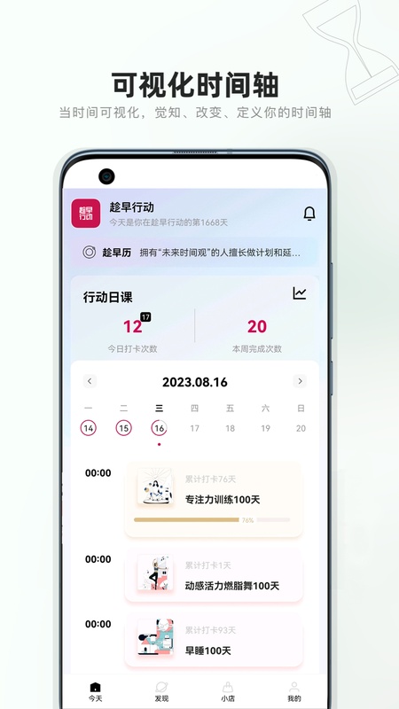 趁早行动app提供线上学习工具和陪伴式服务,助力用户养成习惯、达成目标,创建正向生活。