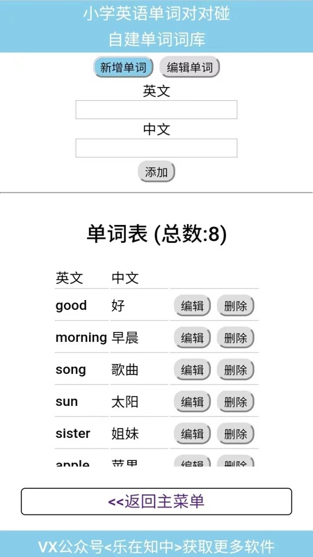 ---本软件贴心设计了多达120个单课自建词库,让同学们可以在小学3-6年级,从学习英语开始,给每一课的单词建立词库,配合每一课的练习赛道和全册单词练习赛道,真正做到课课练习,扎实掌握单词.