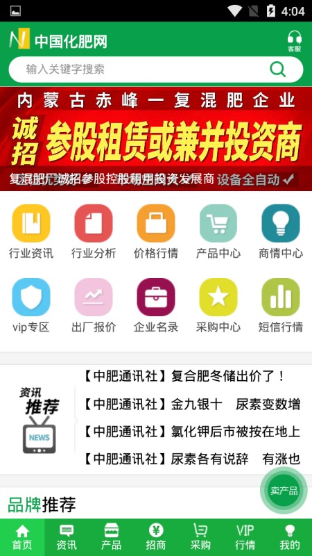 中肥网(www.fert.cn)是服务于中国化肥行业的网络平台,中肥网通过门户网站中肥网(www.fert.cn)、移动手机门户中肥网(wap.fert.cn)、微信公众平台(微信号:fert-cn)、手机App组成的互联网+平台,为生产商、贸易商、经销商、设备商、服务商及新型农资消费者提供化肥行业信息、农资电子商务、企业招商和活动举办、互联网+平台开发等服务。 APP 功能