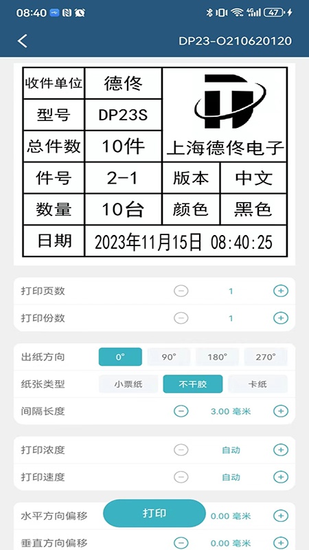 应用名称:微打 应用包名:com.dothantech.android.weida