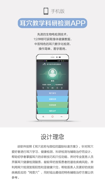 妙郎中耳穴教学科研检测系统具有耳穴学习、健康监测、自动寻找阳性穴位、临床科研和辅助治疗等多种功能,能满足耳穴爱好者学习,针灸治疗等专业医务人员,以及按摩、艾灸、美容、养生保健等非专业人员的使用。 软件功能