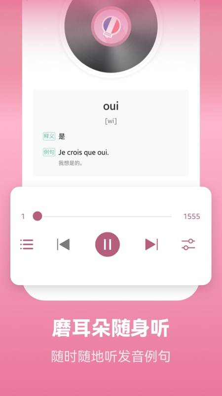 听音辨意、听音选词、听音写词、单词拼写、听音速记等专为法语学习者设计的复习方式,寓教于乐,让法语学习不再枯燥。