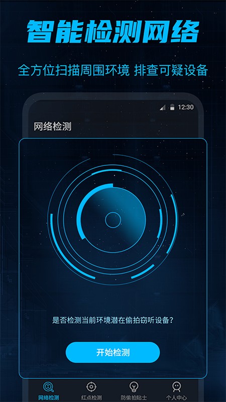 有效应对隐蔽摄像头窥视隐私问题,将反偷拍行为从个人行为提升到对抗产业链的高度,保障用户隐私不被泄露。操作上快捷简单,检测方式深度全面,匹配智能精准,设备分析详细,为用户提供全方位的隐私保护。