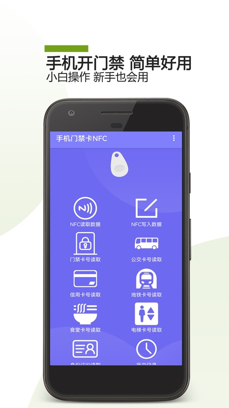 手机门禁卡NFC是一款NFC读、写卡工具。它可以将支持NFC的手机或其它电子设备当成借记卡、公交卡、门禁卡等IC卡使用,通过判断手机是否支持NFC功能,支持读取、写入,如一般的门禁卡,电梯卡、停车卡等等。将相应IC卡中的信息凭证封装成数据包存储在支持NFC的外设中。 功能特色
