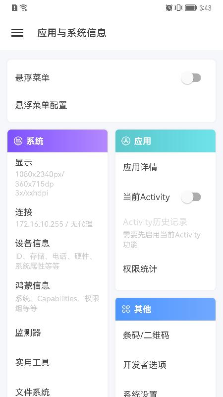 信息超全面,能为用户提供系统和应用各方面的详细信息,无论是系统的硬件参数还是应用的具体权限等都能清晰展现。拥有多种系统监测器和应用使用情况统计功能,方便用户对系统和应用的使用情况进行监控和了解。支持横屏,为用户提供更舒适的查看体验。